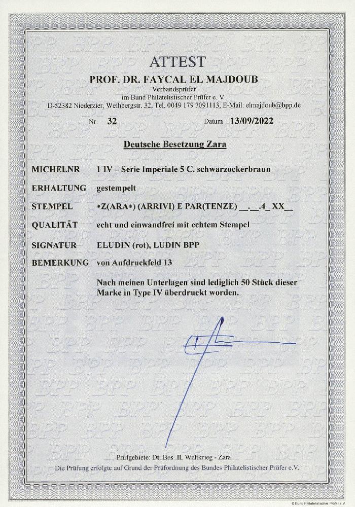 | Prüfgebiet: | Deutsche Besetzung WK 2 Zara |