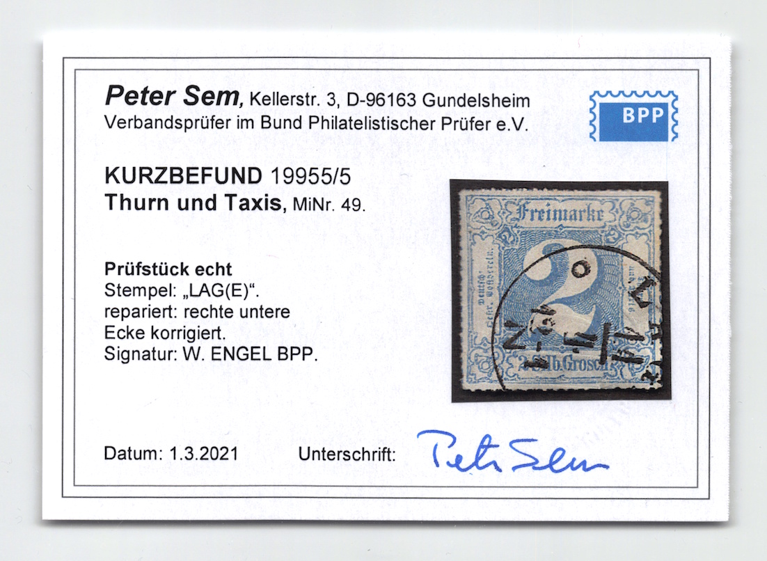| Prüfgebiet: | Altdeutschland Thurn und Taxis |