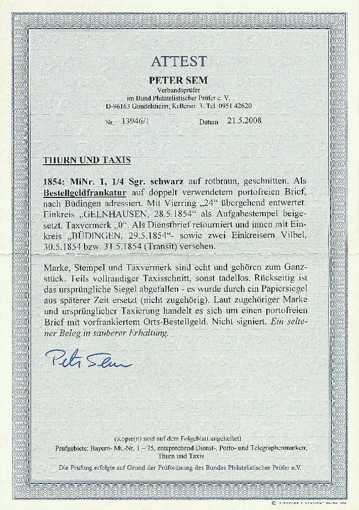 | Prüfgebiet: | Altdeutschland Thurn und Taxis |