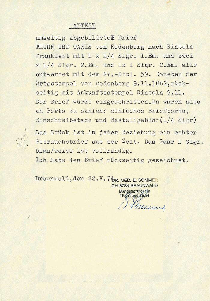| Prüfgebiet: | Altdeutschland Thurn und Taxis |