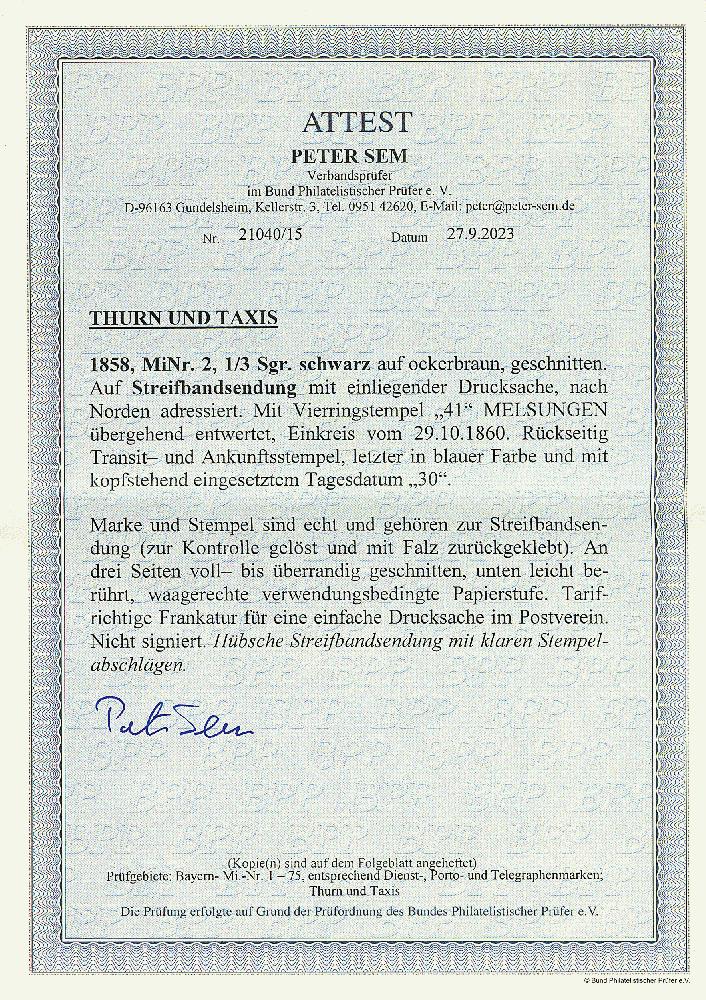 | Prüfgebiet: | Altdeutschland Thurn und Taxis |
