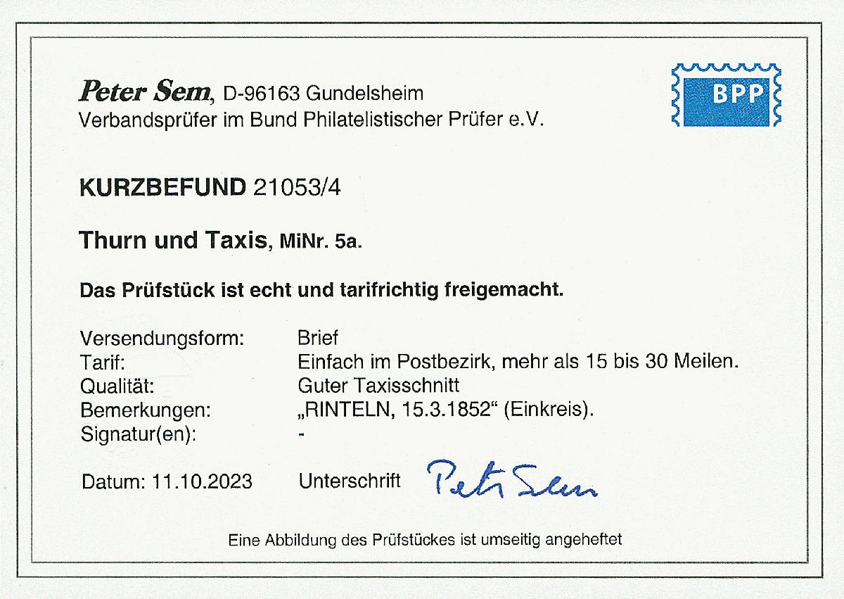 | Prüfgebiet: | Altdeutschland Thurn und Taxis |