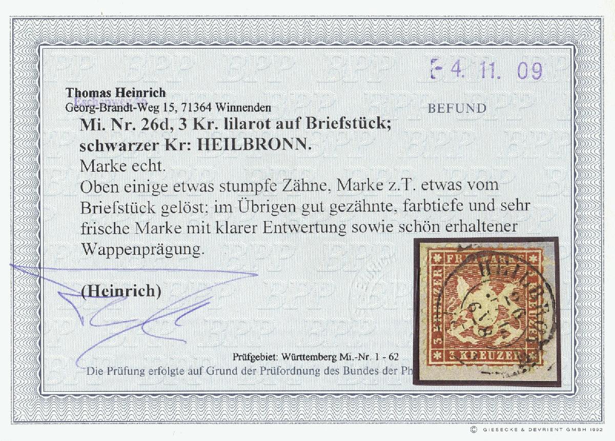 | Prüfer: | Heinrich, Thomas (BPP (Bund Philatelistischer Prüfer)) |