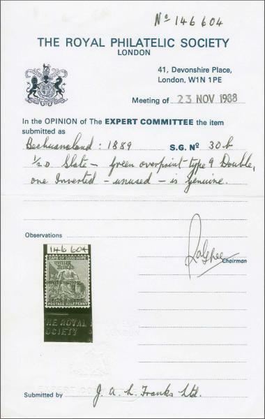 | Prüfer: | RPSL, Royal Philatelic Society (Prüferkommission) |