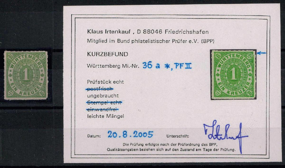 | Prüfer: | Irtenkauf, Klaus (BPP (Bund Philatelistischer Prüfer)) |