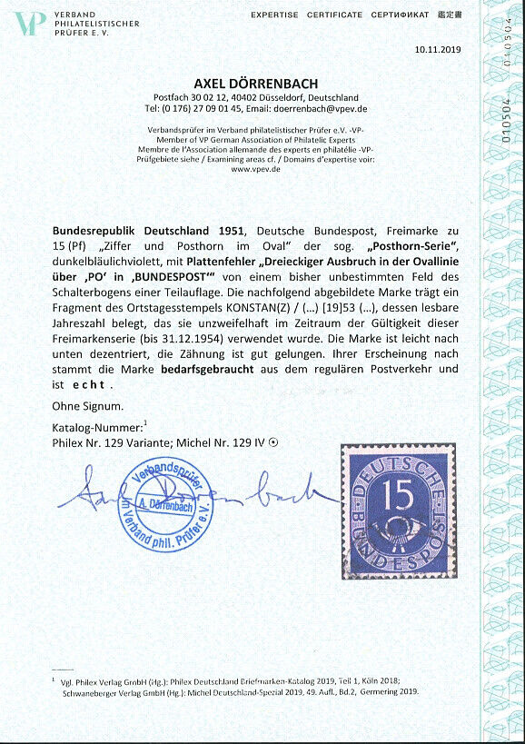 | Zusatzinformationen und Suchstichworte: | ebay.de BRD: Mi.Nr. 129 IV, gestempelt, mit Attest Dörrenbach, VP, Mi -,- (447) Ausruf 80,00 EUR |