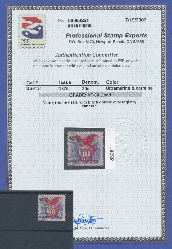 | Zusatzinformationen und Suchstichworte: | ebay.de USA Pictorials 30 Cent 1875 Re-Issue without grill, white paper. Scott # 131 Ausruf 1,667,50 EUR |