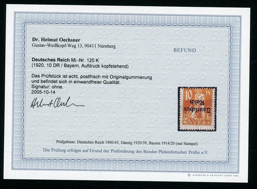 | Prüfer: | Oechsner, Helmut (BPP (Bund Philatelistischer Prüfer)) |