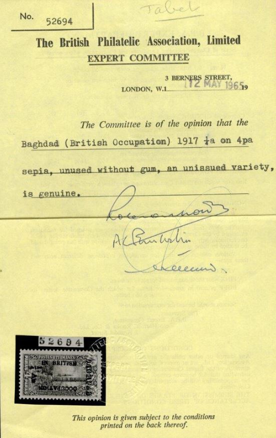 | Prüfer: | The British Philatelic Association, Limited (Prüferkommission) |