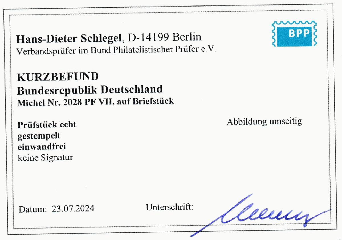 | Prüfer: | Schlegel, Hans-Dieter (BPP (Bund Philatelistischer Prüfer)) |