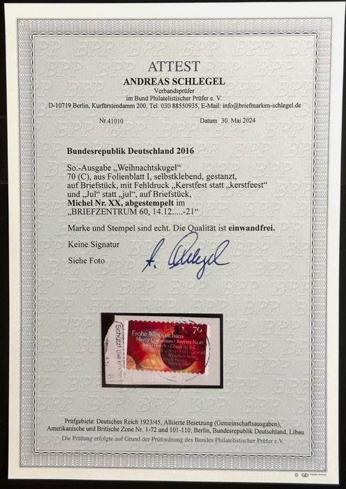 | Prüfer: | Schlegel, Andreas (BPP (Bund Philatelistischer Prüfer)) |