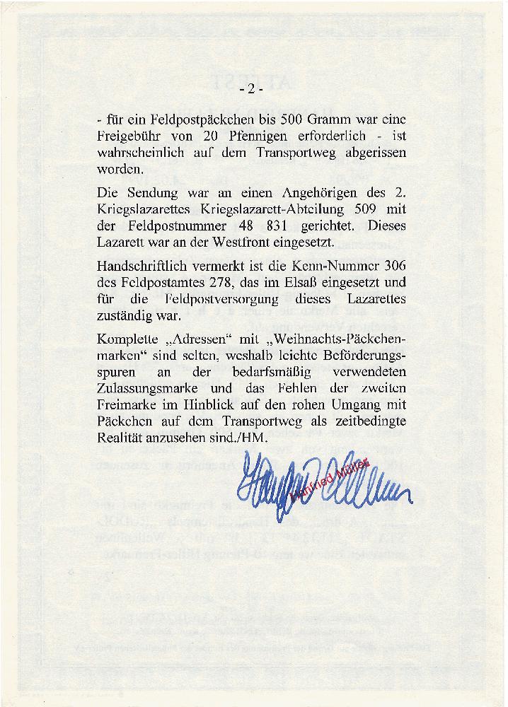 | Prüfgebiet: | Deutsches Reich Feldpost WK 2 |