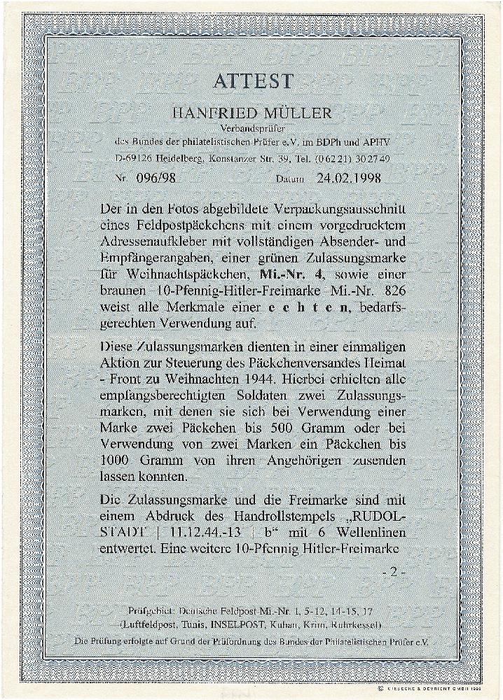 | Zusatzinformationen und Suchstichworte: | Feldpost II Weltkrieg Päckchen Weihnachtsmarke Nr. 4 |