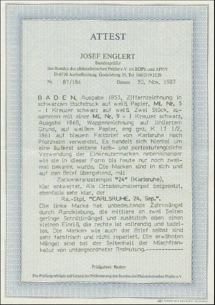 | Prüfer: | Englert, Josef (BPP (Bund Philatelistischer Prüfer)) |
