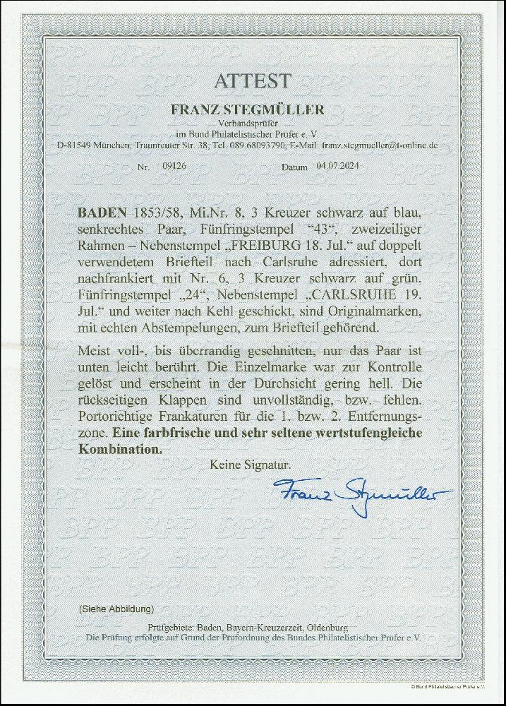 | Prüfer: | Stegmüller, Franz (BPP (Bund Philatelistischer Prüfer)) |