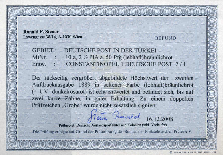 | Prüfer: | Steuer, Ronald F. (BPP (Bund Philatelistischer Prüfer)) |