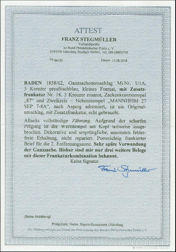 | Prüfer: | Stegmüller, Franz (BPP (Bund Philatelistischer Prüfer)) |