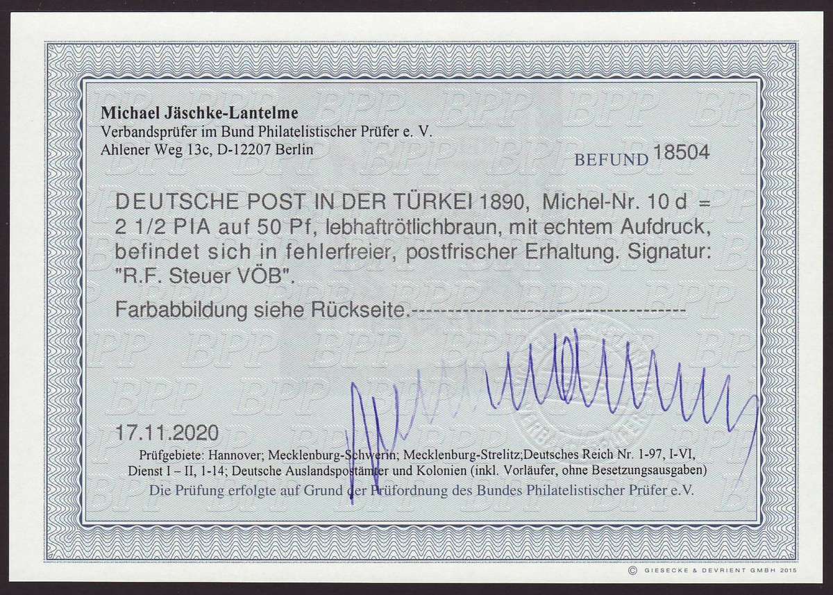 | Prüfgebiet: | Deutsche Auslandspostämter Türkei |