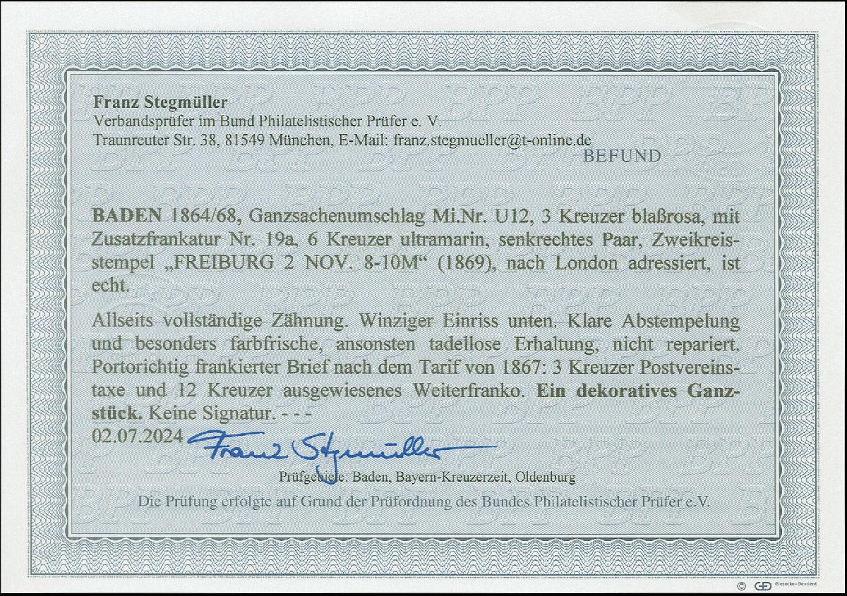 | Prüfer: | Stegmüller, Franz (BPP (Bund Philatelistischer Prüfer)) |