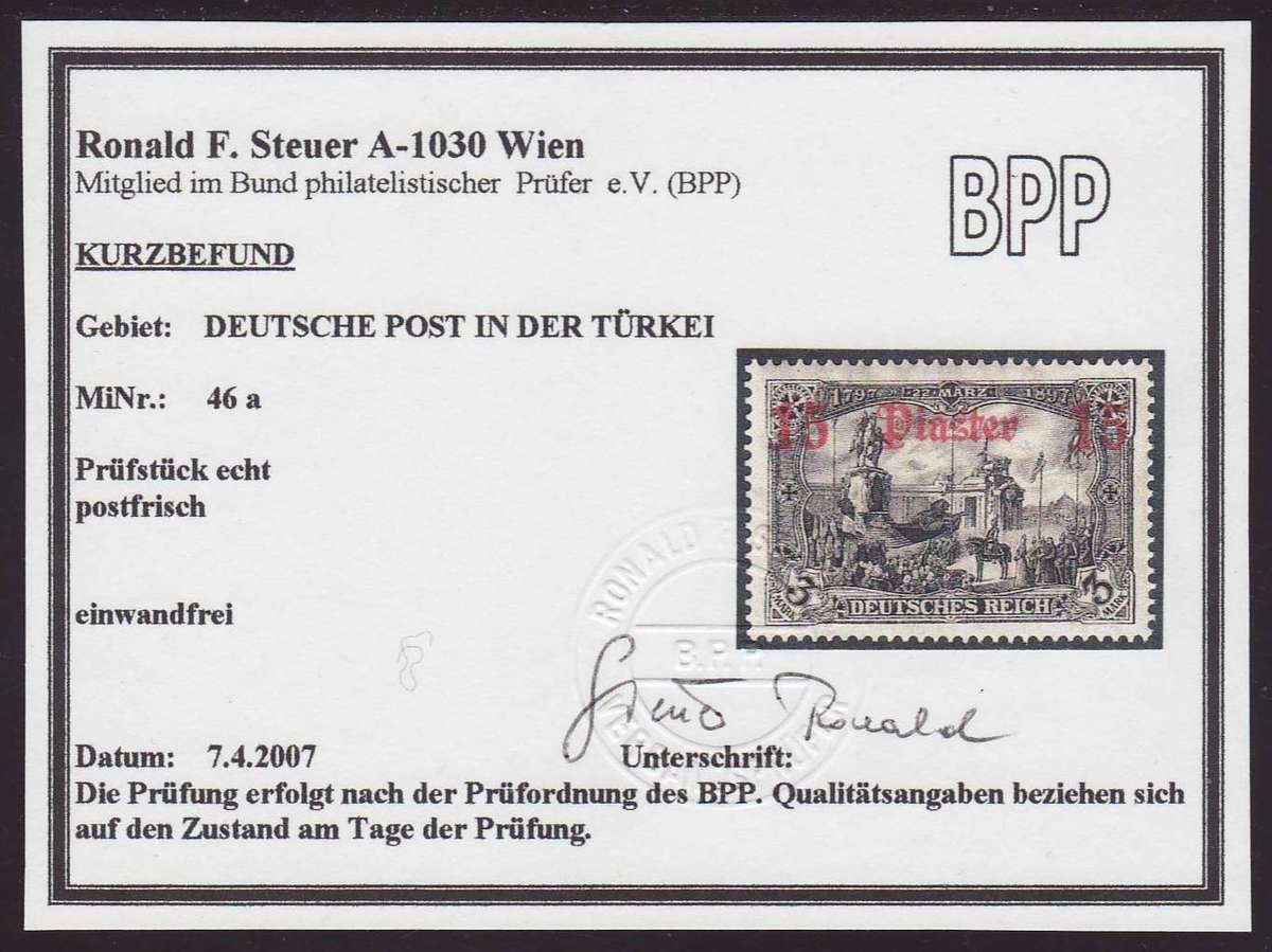 | Prüfgebiet: | Deutsche Auslandspostämter Türkei |
