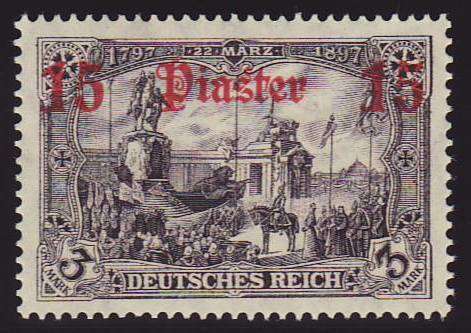 | Zusatzinformationen und Suchstichworte: | Christian E. Geigle Briefmarkenfachhandel Los 0003233212 Deutsche Auslandspost Türkei 1905/13, 15 PIA auf 3 M. Denkmal Kaiser Wilhelms schwarzgrauviolett, mit Wasserzeichen, postfrisches Kabinettstück dieser seltenen Marke, unsigniert mit FKB Steuer "einwandfrei". Festpreis 210,00 EUR |