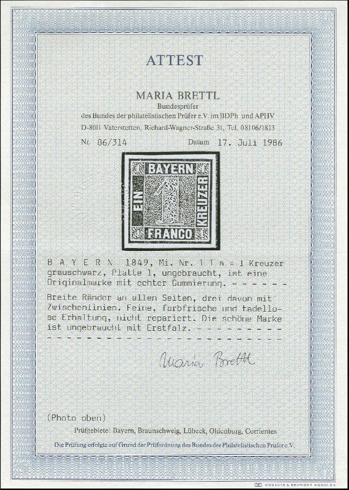 | Prüfer: | Brettl, Maria (BPP (Bund Philatelistischer Prüfer)) |