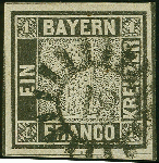 | Zusatzinformationen und Suchstichworte: | Heinrich Köhler 384. Auktion 19./20., 23. - 28. September 2024 Los 3978 Altdeutschland Bayern 1 Kr. schwarz, Platte 1, farbfrisch und allseits breitrandig, mit sauber aufgesetztem gMR "18" AUGSBURG. Tadellos Ausruf 1.000,00 EUR |