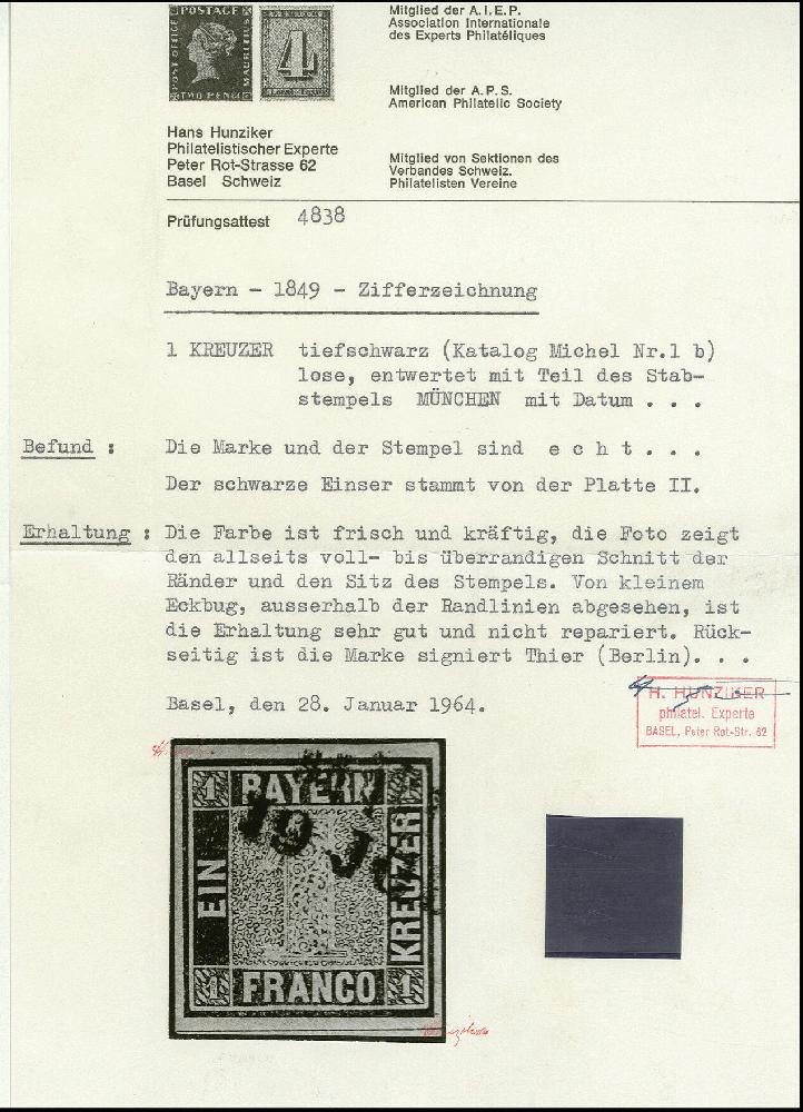 | Zusatzinformationen und Suchstichworte: | Heinrich Köhler 384. Auktion 19./20., 23. - 28. September 2024 Los 3984 Altdeutschland Bayern 1 Kreuzer grauschwarz, Platte 1, farbfrisch und voll- bis breitrandig, entwertet durch L2 von München. Ganz minimale Schürfung im Falzbereich Ausruf 600,00 EUR |