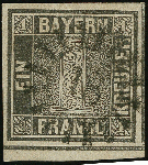 | Zusatzinformationen und Suchstichworte: | Heinrich Köhler 384. Auktion 19./20., 23. - 28. September 2024 Los 3992 Altdeutschland Bayern 1 Kr. Schwarz, Platte 2, farbfrisch und breitrandig, rechts mit Zwischenlinie, unten mit schmalem Teil des Bogenrandes, sauber entwertet durch gMR "18" AUGSBURG. Tadellos. Ausruf 1.000,00 EUR |