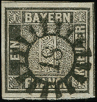 | Zusatzinformationen und Suchstichworte: | Heinrich Köhler 384. Auktion 19./20., 23. - 28. September 2024 Los 3993 Altdeutschland Bayern 1 Kr. schwarz, Platte 2, allseits breitrandig, allseits breitrandig mit sichtbaren Trennungslinien and drei Seiten, mit sehr klarem mit gMR “18” (Augsburg), unbedeutende, minimale Knitterspuren, sonst in einwandfreier Erhaltung, ein schönes, farbfrisches Exemplar Ausruf 800,00 EUR |