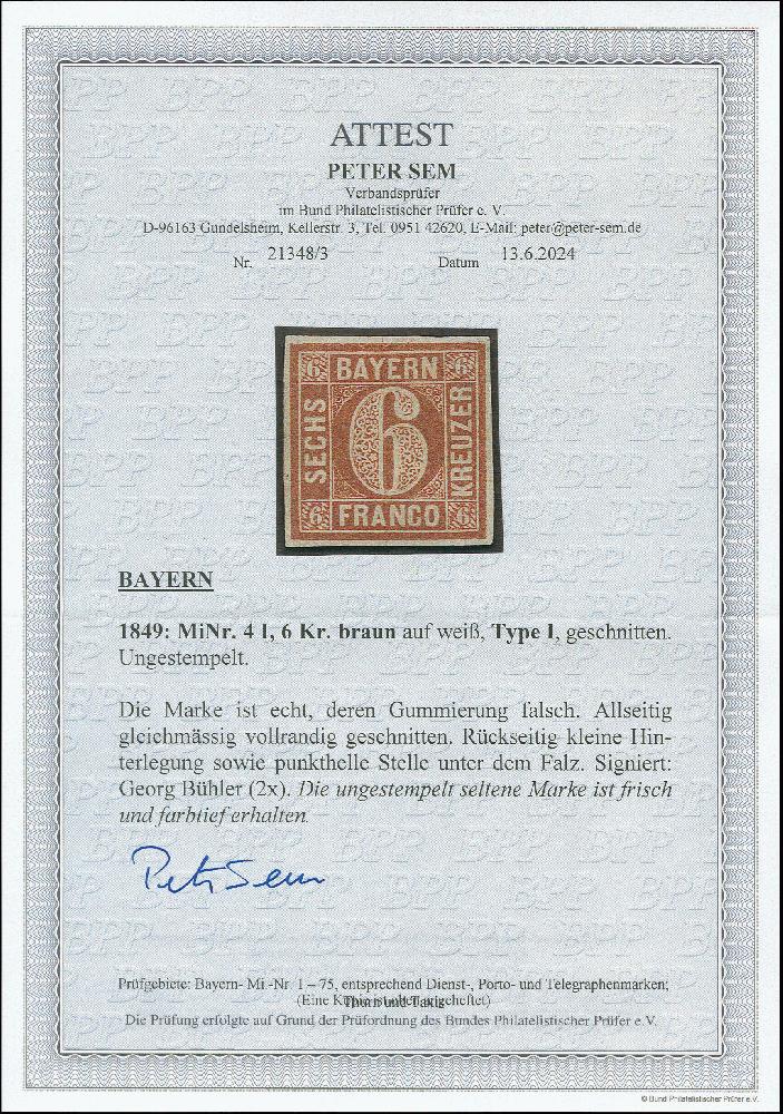 | Prüfer: | Sem, Peter (BPP (Bund Philatelistischer Prüfer)) |