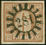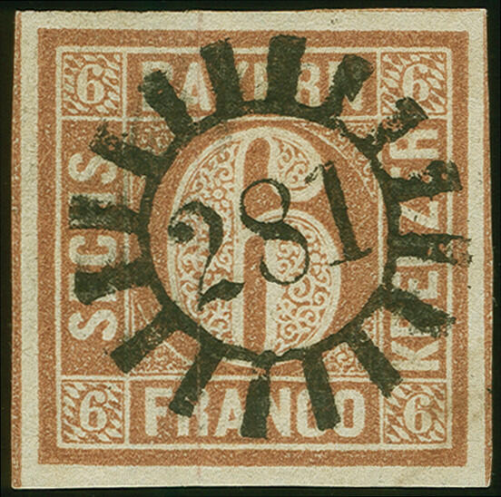 | Zusatzinformationen und Suchstichworte: | Heinrich Köhler 384. Auktion 19./20., 23. - 28. September 2024 Los 4005 Altdeutschland Bayern 6 Kr. braunorange, farbfrisch und breitrandig, mit klar und zentrisch aufgesetztem gMR "281", Luxus. Ausruf 80,00 EUR |