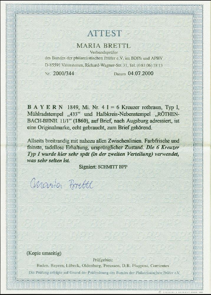 | Prüfer: | Brettl, Maria (BPP (Bund Philatelistischer Prüfer)) |