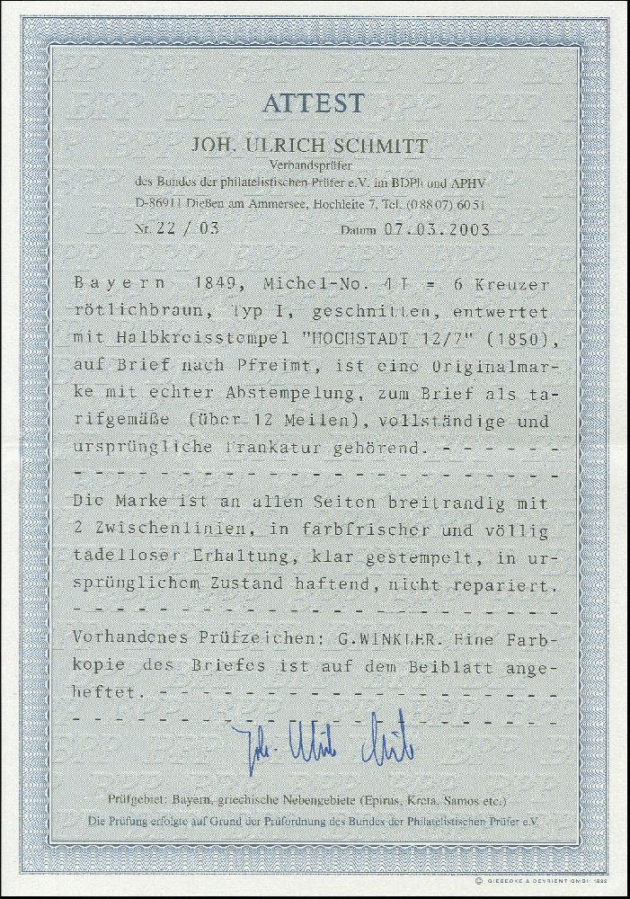 | Prüfer: | Schmitt, Joh. Ulrich (BPP (Bund Philatelistischer Prüfer)) |