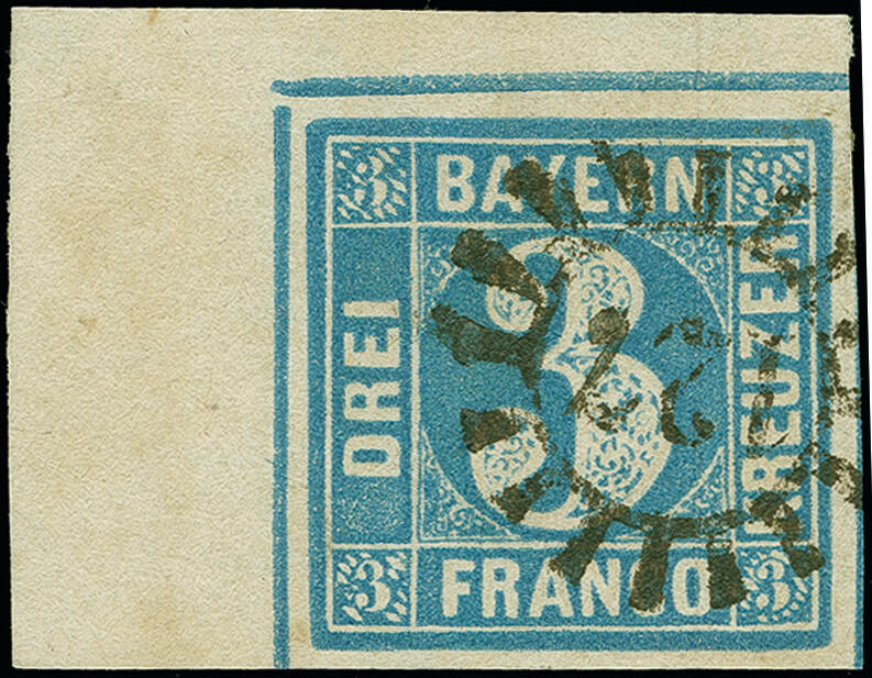 | Zusatzinformationen und Suchstichworte: | Heinrich Köhler 384. Auktion 19./20., 23. - 28. September 2024 Los 4018 Altdeutschland Bayern 3 Kr. blau, Platte 2, voll- bis breitrandiget linke obere Bogenecke mit ca. 13/3 mm Bogenrand, sauber entwertet durch gMR "127". Tadellos. Ausruf 80,00 EUR |