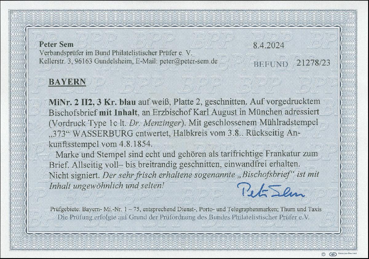 | Prüfer: | Sem, Peter (BPP (Bund Philatelistischer Prüfer)) |