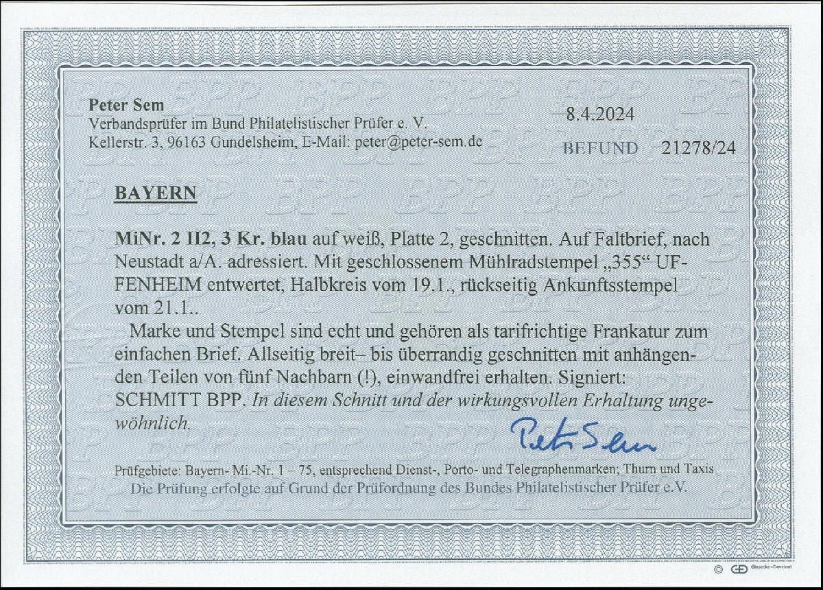 | Prüfer: | Sem, Peter (BPP (Bund Philatelistischer Prüfer)) |