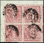 | Zusatzinformationen und Suchstichworte: | Heinrich Köhler 384. Auktion 19./20., 23. - 28. September 2024 Los 4028 Altdeutschland Bayern 1 Kreuzer rosa, Type 1, 4er-Block aus der linken oberen Bogenecke, farbfrisch und allseits breit- bis überrandig, rechts mit Teilen beider Nachbarmarken, oben und links mit ca. 5 mm Bogenrand, entwertet durch oMR "22" ASCHAFFENBURG. Das rechte Paar unbedeutende leichte Knitterung, sonst tadellos. Eine sehr seltene und außerordentlich attraktive Einheit. Ausruf 1.500,00 EUR |