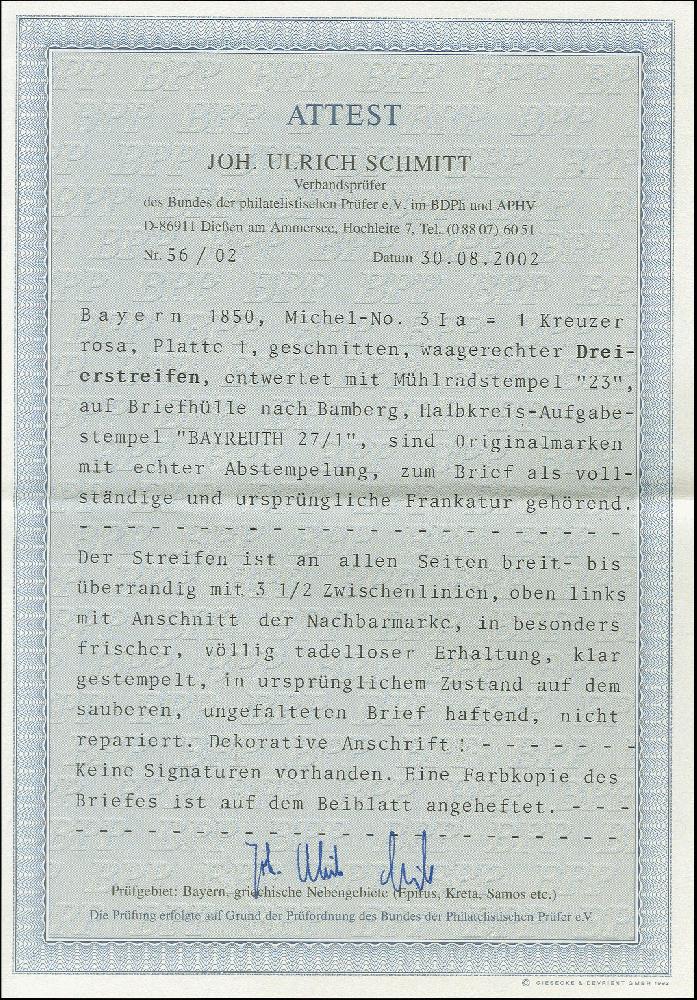 | Prüfer: | Schmitt, Joh. Ulrich (BPP (Bund Philatelistischer Prüfer)) |