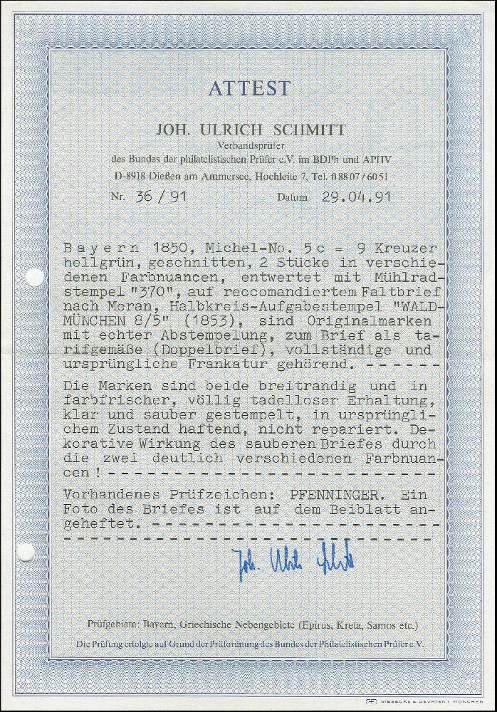 | Prüfer: | Schmitt, Joh. Ulrich (BPP (Bund Philatelistischer Prüfer)) |