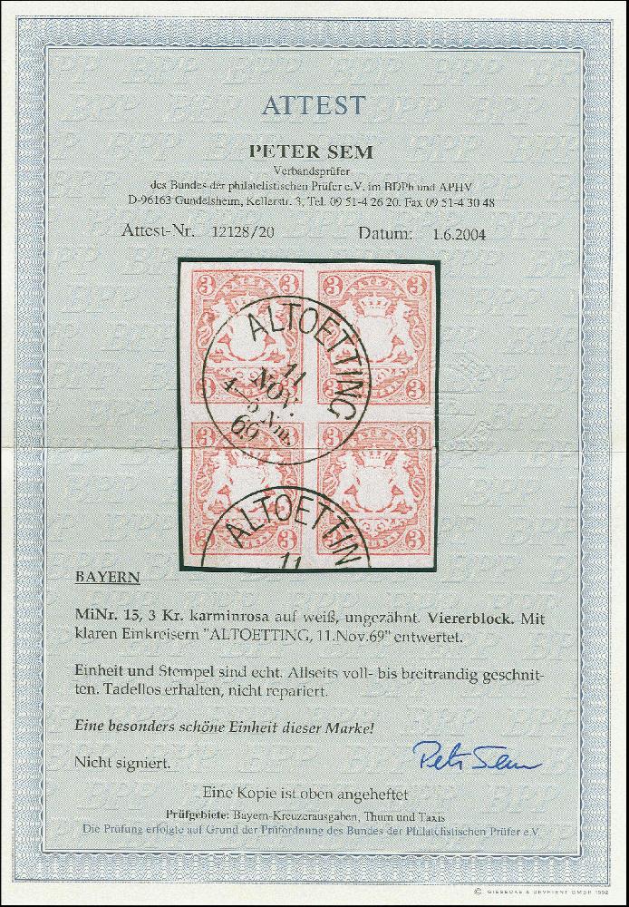 | Prüfer: | Sem, Peter (BPP (Bund Philatelistischer Prüfer)) |