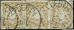 | Zusatzinformationen und Suchstichworte: | Heinrich Köhler 384. Auktion 19./20., 23. - 28. September 2024 Los 4066 Altdeutschland Bayern 6 Kreuzer ockerbraun im waagerechten 3er-Streifen, voll- bis meist breitrandig, mit privaten Durchstich (nicht prüfbar), sauber entwertet durch Einkreisstempel "FUERTH 15 JUL.". Die linke Marke minimale Knitterspuren, die rechte etwas falzhell und Seidenfadenfehler, sonst tadellos. Eine seltene Einheit. Ausruf 200,00 EUR |