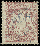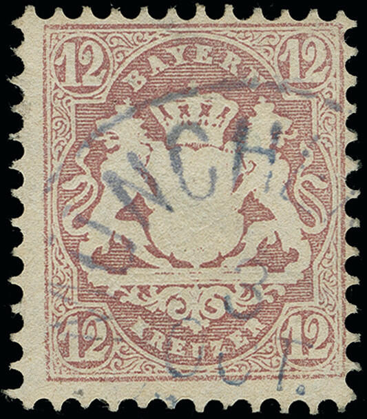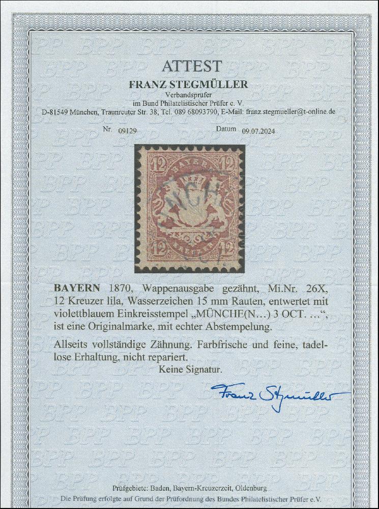 | Zusatzinformationen und Suchstichworte: | Heinrich Köhler 384. Auktion 19./20., 23. - 28. September 2024 Los 4074 Altdeutschland Bayern 12 Kr. lila mit Wz. 'enge Rauten', farbfrisch und einwandfrei gezähnt, sauber entwertet durch EKr. von München. Tadellos Ausruf 300,00 EUR |
