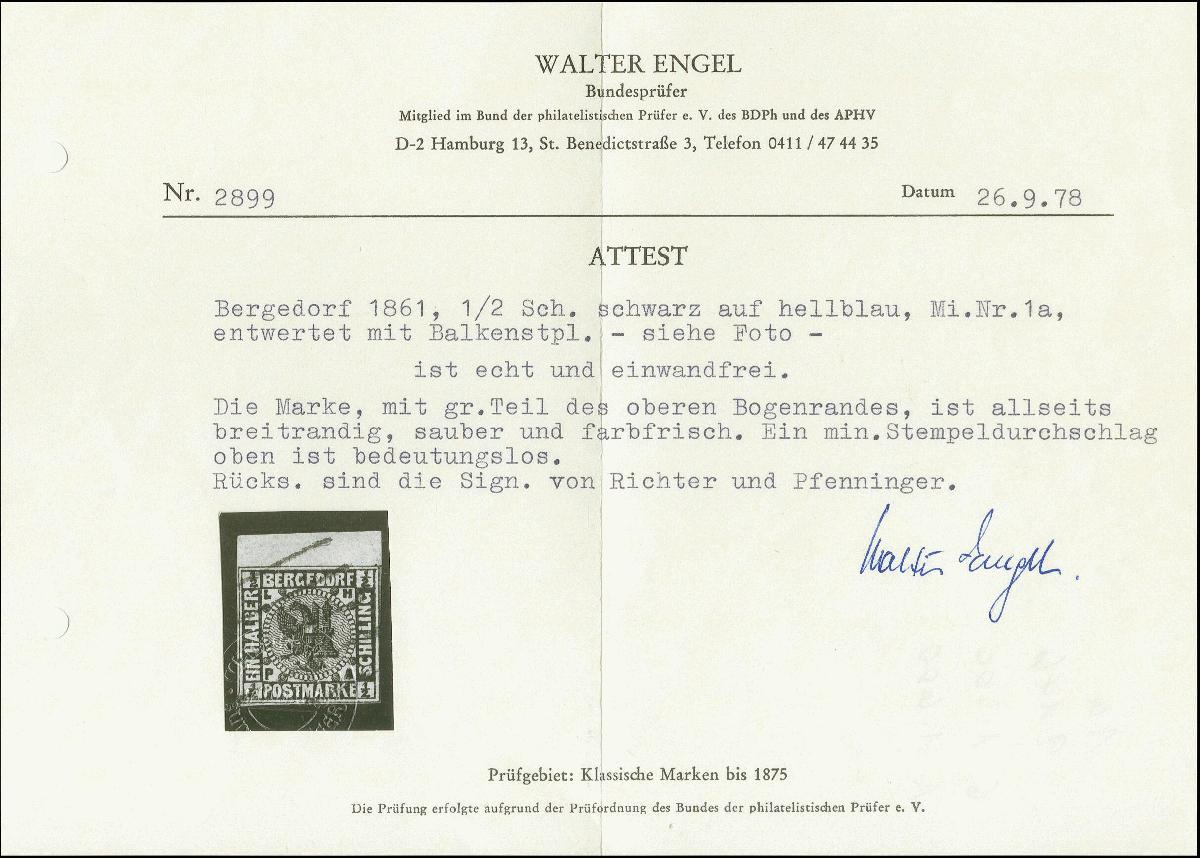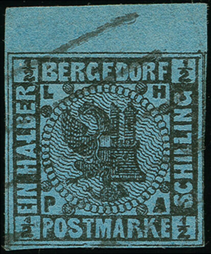 | Zusatzinformationen und Suchstichworte: | Heinrich Köhler 384. Auktion 19./20., 23. - 28. September 2024 Los 4092 Altdeutschland Bergedorf ½ Sch. auf blau, farbfrisch und allseits enorm breitrandig, mit praktisch vollständigen Trennungslinien und oben ca. 4/5 mm Bogenrand, sauber entwertet durch Strichstempel. Schöne und tadellose Erhaltung. Ein absolutes Ausnahmestück. Ausruf 500,00 EUR |