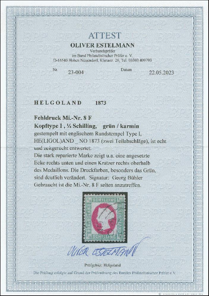 | Prüfer: | Estelmann, Oliver (BPP (Bund Philatelistischer Prüfer)) |