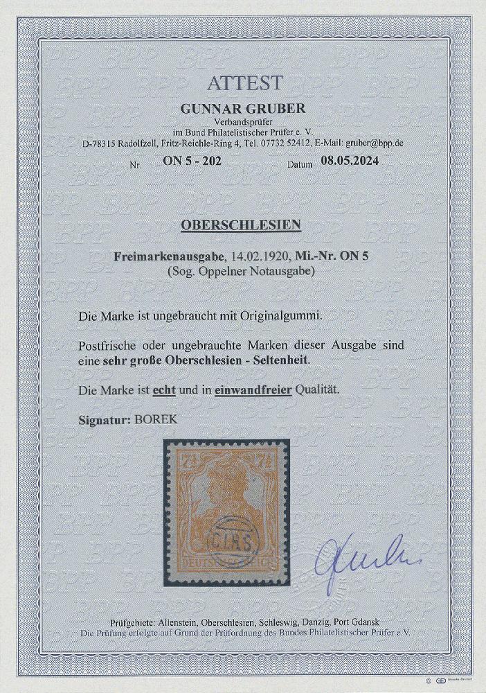 | Zusatzinformationen und Suchstichworte: | Christoph Gärtner 60. Auktion 14. - 18. Oktober 2024 Los 7271 Ost-Oberschlesien, Insurgenten 1920, Handstempelaufdruck, 7 1/2 Pfg., ungebraucht, sign. Borek, Foto-Attest Gruber BPP (2024):"echt und einwandfrei", eine seltene Marke, Mi 2200,- Ausruf 850,00 EUR |