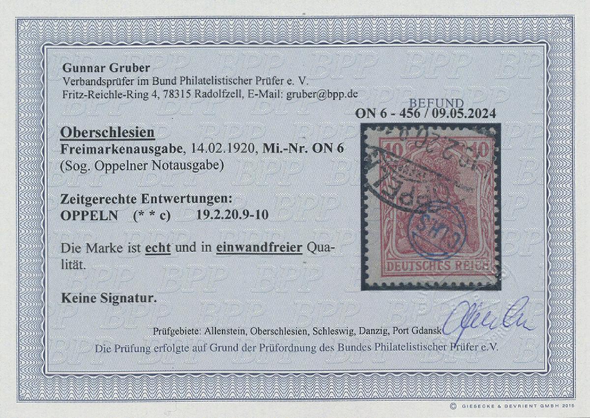 | Zusatzinformationen und Suchstichworte: | Christoph Gärtner 60. Auktion 14. - 18. Oktober 2024 Los 7273 Ost-Oberschlesien, Insurgenten 1920, Handstempelaufdruck, 10 Pfg., zeitgerechte Entwertung OPPELN 19.2.20, Foto-Befund Gruber BPP (2024): "echt und einwandfrei", Mi 380,- Ausruf 150,00 EUR |