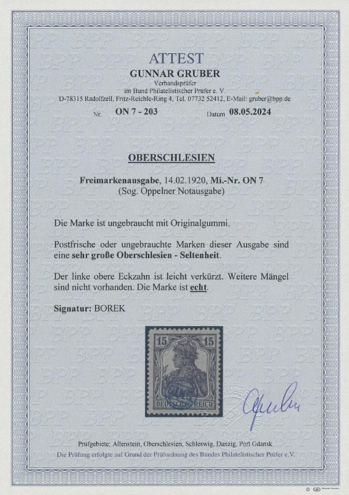| Zusatzinformationen und Suchstichworte: | Christoph Gärtner 60. Auktion 14. - 18. Oktober 2024 Los 7275 Ost-Oberschlesien, Insurgenten 1920, Handstempelaufdruck, 15 Pfg., ungebraucht, sign. Borek, Foto-Attest Gruber BPP (2024), linke obere Eckzahn leicht verkürzt, sonst tadellos, Mi 800,- Ausruf 150,00 EUR |