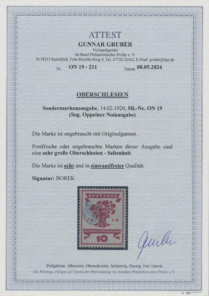 | Zusatzinformationen und Suchstichworte: | Christoph Gärtner 60. Auktion 14. - 18. Oktober 2024 Los 7287 Ost-Oberschlesien, Insurgenten 1920, Handstempelaufdruck, Nationalversammlung, 10 Pfg., ungebraucht, eine sehr seltene Marke, sign. Borek, Foto-Attest Gruber BPP (2024): "echt und einwandfrei", Mi 1500,- Ausruf 600,00 EUR |