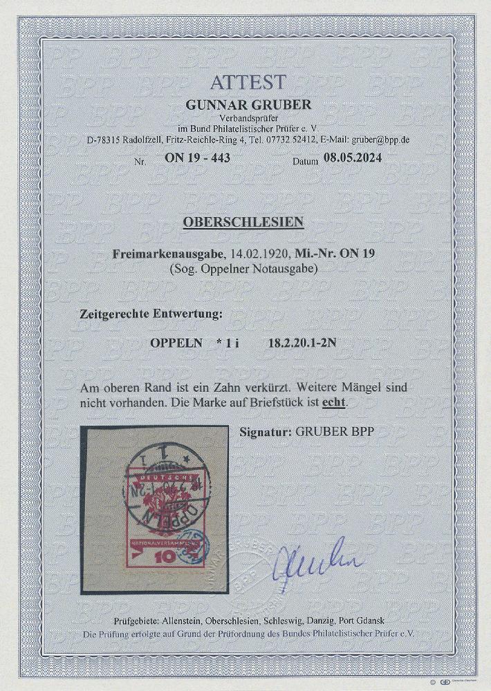 | Zusatzinformationen und Suchstichworte: | Christoph Gärtner 60. Auktion 14. - 18. Oktober 2024 Los 7288 Ost-Oberschlesien, Insurgenten 1920, Handstempelaufdruck, Nationalversammlung, 10 Pfg., am oberen Rand ein kurzes Zähnchen, auf Briefstück, zeitgerechte Entwertung OPPELN 14.2.20, gepr. sowie Foto-Attest Gruber BPP (2024), Mi 1200,- + Ausruf 250,00 EUR |